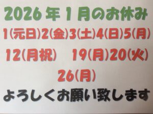 【2026年1月のお休み】